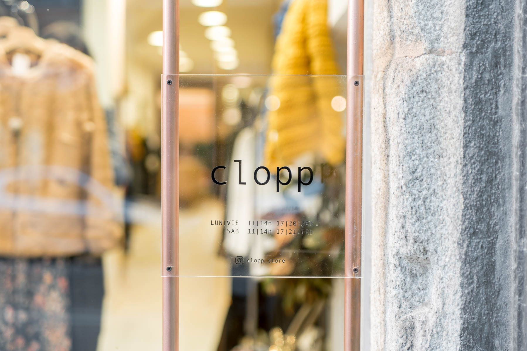 X Clopp es una tienda de ropa emplazada en un local situado en la calle San Andrés 44 en A Coruña. Se trata de un espacio rectangular estrecho, donde la piedra y el enfoscado blanco son protagonistas. El color natural de la piedra se conjuga con los tonos de madera de roble utilizados en el mobiliario, como puede ser el mostrador y los percheros.Las paredes de piedra se rematan en su base con un zócalo de piedra, del cual emergen los percheros conformados en cobre y acero. El cobre se ha utilizado como material base en todos los elementos que componen la tienda.El mostrador se muestra como un bloque de madera apoyado en dos conjuntos de patas también rematadas en acero y cobre.Más allá del arco de piedra existente, está la zona de transición a la parte trasera, donde se sitúa el aseo y los probadores, también resueltos con tablero contrachapado.