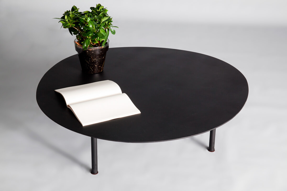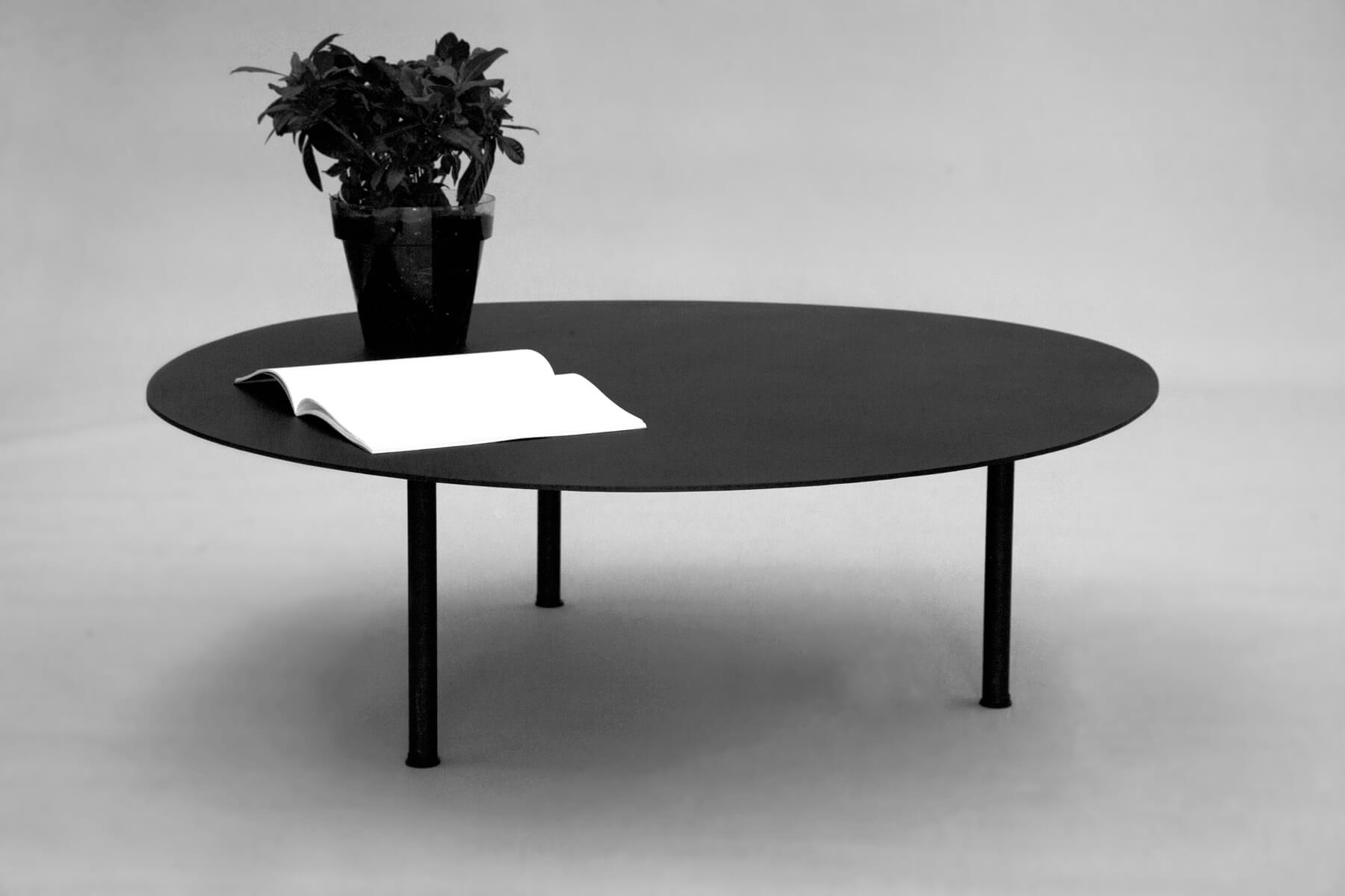 X O es una mesa de centro cortada a laser con los mínimos apoyos posibles y se resuelve con un único material y color.