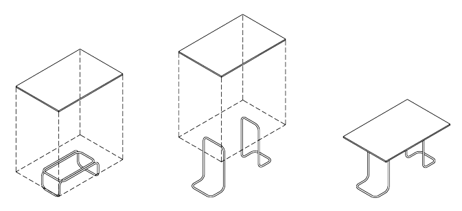 La estructura de patas en L es la manera más fácil y limpia de combinar los movimientos, dejando el máximo espacio libre para los pies, haciendo que la mesa sea lo más cómoda posible.